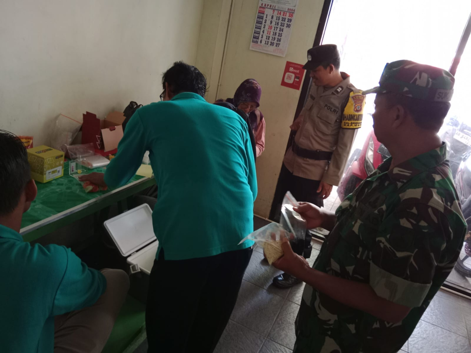 Wates - Jumat Curhat, Bhabinkamtibmas kalurahan Bendungan Aiptu Jajuli Badarudin bersama Babinsa Serma Sukardi melaksankan Program Jumat Curhat sekaligus pendampingan pengecekan kesehatan makanan yang dilaksanakan Tim Dinkes Kulon Progo (Puskesmas Wates), Satpol PP Kulon Progo, BP Pom Kulon Progo di Pasar Bendungan.