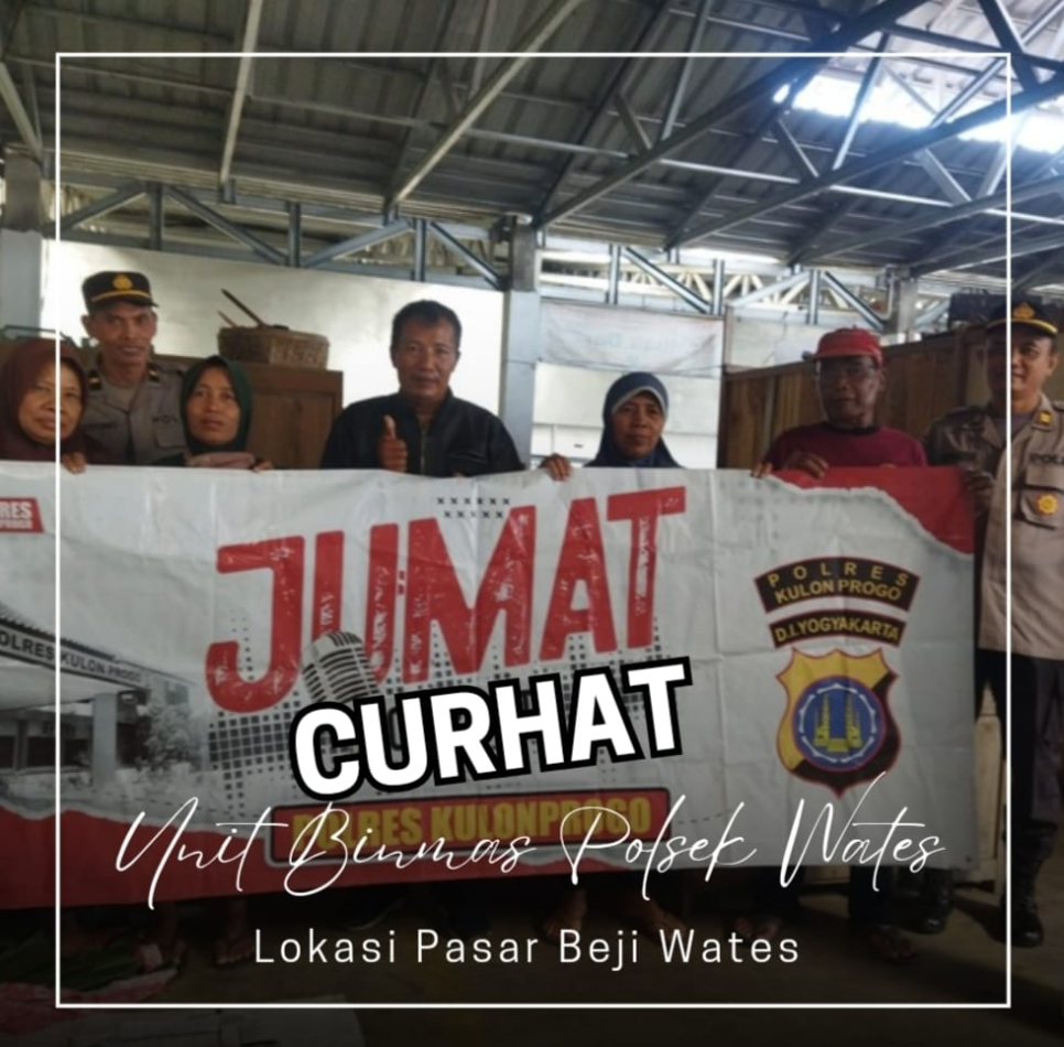 Wates - Kegiatan Jumat Curhat Polsek Wates yang dipimpin oleh Kanit Binmas Iptu Nanang Suherli Rahman bertujuan untuk mendengarkan langsung curhatan warga masyarakat di Pasar Beji Kelurahan Wates.