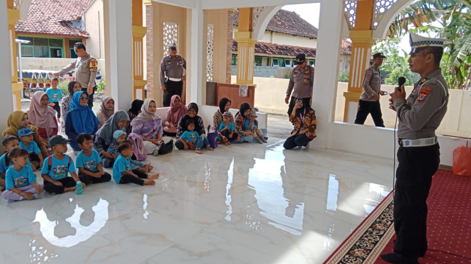 Sementara itu, IPTU Trisnanto, S.H., M.A.P. mengenalkan tugas kepolisian di bidang lalu lintas. Ia menjelaskan secara ringan tentang pentingnya tertib berlalu lintas, mengenal rambu-rambu sederhana, serta mengajarkan anak-anak untuk selalu menggunakan helm saat dibonceng orang tua. Penyampaian materi dilakukan secara interaktif sehingga anak-anak tampak antusias dan ceria mengikuti kegiatan.
