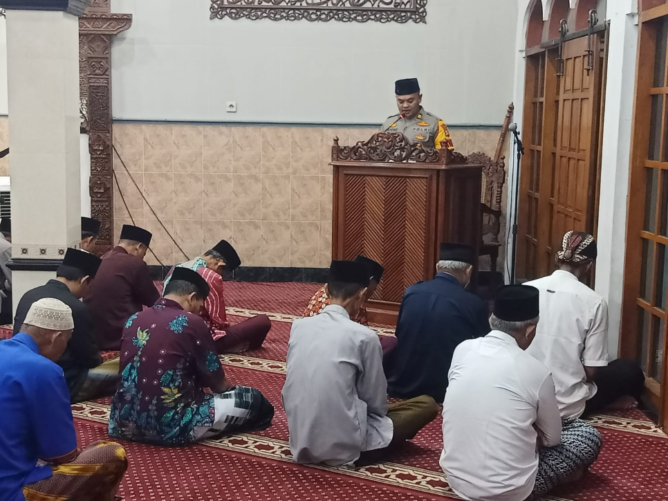 Kanitreskrim Polsek Pengasih IPTU Triyono, S.H., M.A.P. memberikan Kultum Subuh di Masjid Al-Mamuri