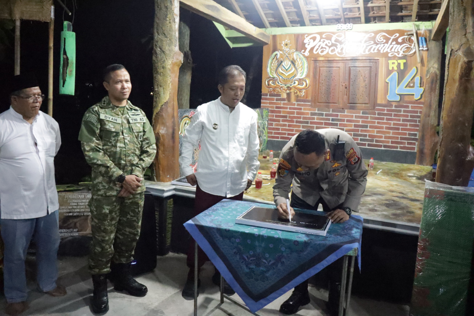 Kulonprogo - Kapolres Kulonprogo AKBP Ridho Hidayat, S.H., S.I.K., bersama Wakil Bupati Kulon Progo H. Ambar Purwoko meresmikan hasil renovasi Pos Satkamling RT 14 RW 07, Padukuhan Karangtengah Lor, Kalurahan Margosari, pada Jumat (23/1/2026). Peresmian tersebut dikemas dalam kegiatan Sambang Kamtibmas dengan model dialog santai atau cakrukan bersama masyarakat.Kegiatan ini turut dihadiri dan didampingi oleh Dandim 0731/Kulon Progo Letkol Inf. Dyan Niti Sukma. Kehadiran jajaran pimpinan daerah tersebut menjadi momentum penting dalam memperkuat sinergi antara pemerintah daerah, TNI-Polri, dan masyarakat guna menciptakan wilayah yang aman, kondusif, serta menjunjung tinggi nilai-nilai kebersamaan dan semangat guyub rukun.