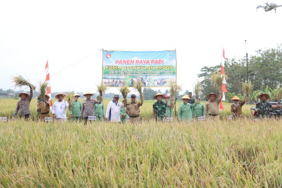 Acara ditutup dengan panen padi secara simbolis oleh jajaran pimpinan yang hadir bersama para petani, menjadi momentum kolaboratif antara unsur pemerintahan, TNI-Polri, dan masyarakat dalam membangun kemandirian pangan di Kulonprogo.