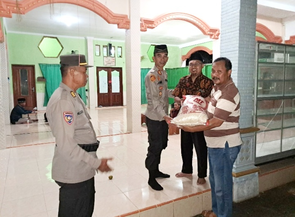 Kapolsek Pengasih Menyerahkan Zakat Fitrah Dari Polres ke Ketua Pondok Pesantren Nurul Dolam
