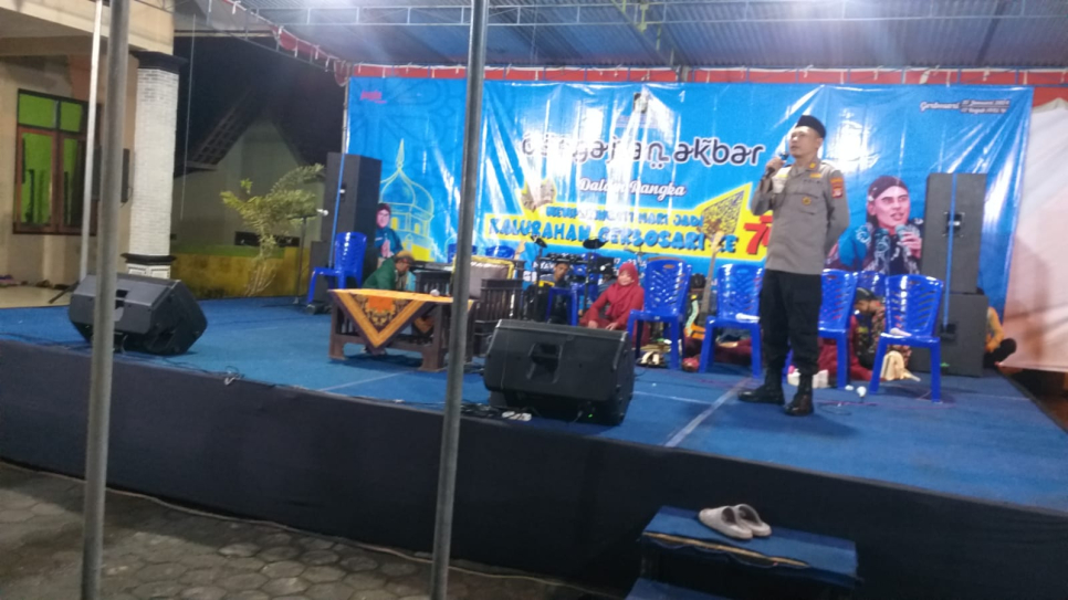 Samigaluh - Bertempat di Halaman Kantor Kalurahan Gerbosari, Kapolsek Samigaluh AKP Antu Nugrahanto A.P., SH., menghadiri Pengajian Akbar dalam rangka Hari Jadi Kalurahan Gerbosari ke-77 Tahun 2024 dengan penceramah KH Ahmad Syaifudin Al Asep bersama Qosidah Modern Ki Lereng Mujil dari Kabupaten Wonosobo Jawa Tengah, Minggu (21/01/2024) malam.