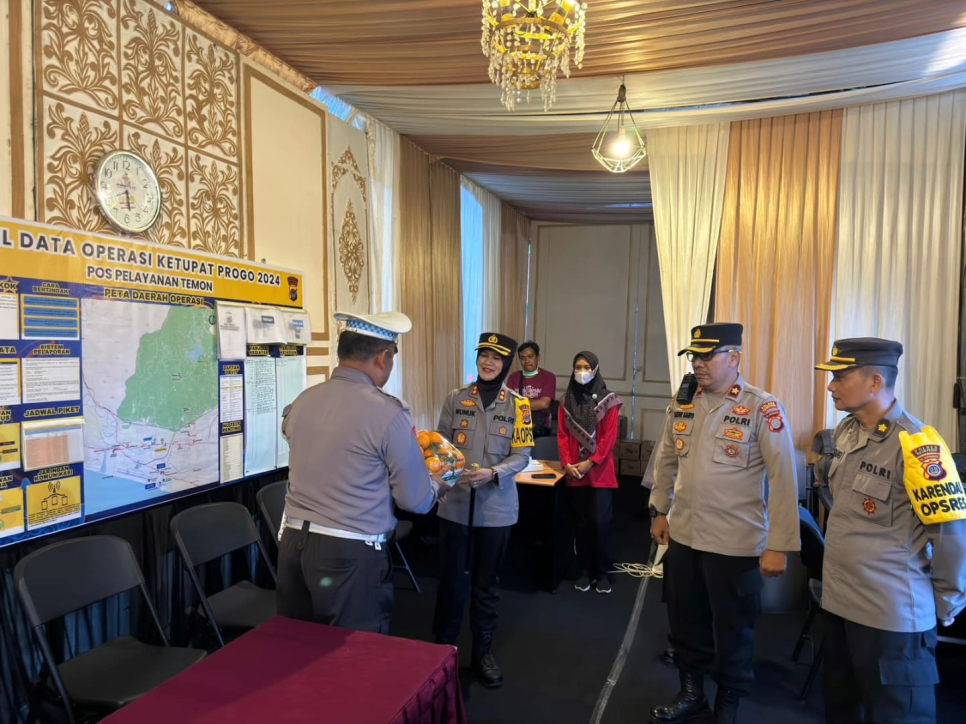 TEMON. Kapolres Kulonprogo AKBP Nunuk Setiyowati, S.I.K.,M.H., selaku (KAOPSRES) didampingi oleh Kabag Ops Polres Kulonprogo Kompol Sumalugi, S.H., M.H., selaku (KARENDAL OPSRES) melaksanakan pengecekan personil Posyan Temon diterima langsung oleh Kapolsek Temon Kompol Tjatur Atmoko ST, S.E. dan Kapospam Iptu Subarno serta didampingi Wakapospam Iptu Paryono. Sabtu (6/4/2024).Dalam kesempatan tersebut AKBP Nunuk Setiyowati, S.I.K.,M.H., melaksanakan pengecekan personil dan menyampaikan beberapa arahan, diantaranya sebagai berikut ucapan terimakasih kepada petugas jaga dan ini sebagai bentuk kesiap Siagaannya.