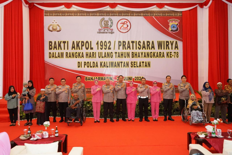 Angkatan Akpol 1992 yang dikenal Pratisara Wirya menyambut HUT ke-78 Bhayangkara dengan mengadakan kegiatan sosial. Beragam kegiatan digelar mulai dengan bakti sosial dan bakti Kesehatan di Kalimantan Selatan, Minggu (23/6/2024) kemarin.