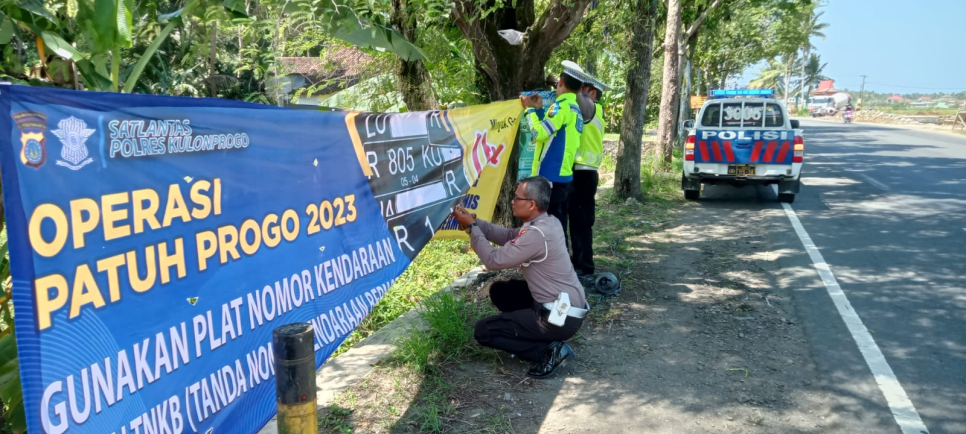 Operasi Patuh Progo 2023, Polsek Temon Polres Kulonprogo Pasang Spanduk Imbauan