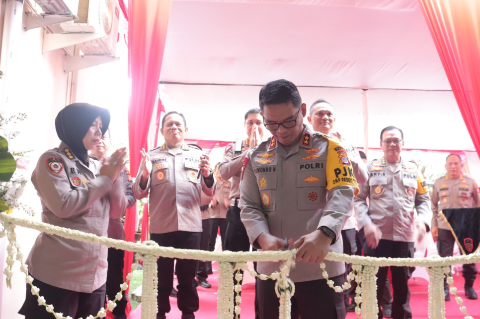 Kapolda DIY Irjen Pol Suwondo Nainggolan, S.I.K., M.H., hadir memberikan sambutan sekaligus meresmikan pusat pelayanan tersebut dengan tradisi pemotongan pita.