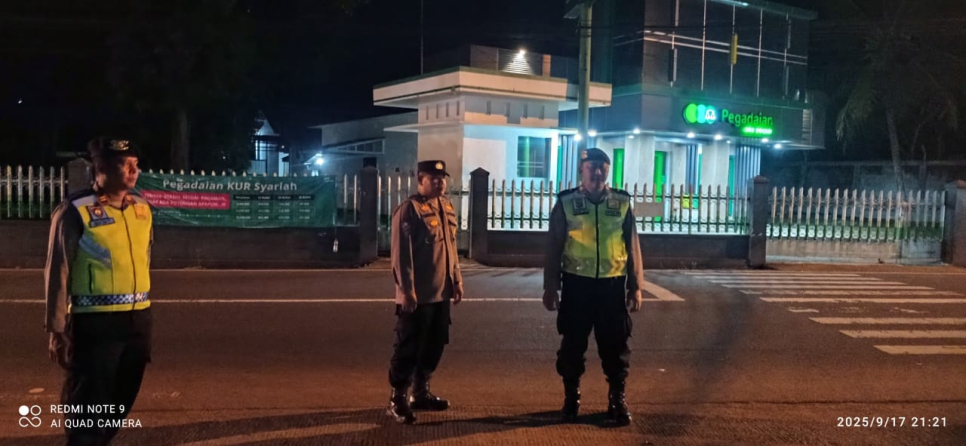 Kalibawang - Pawas Ps. Panit Binmas Polsek Kalibawang Aiptu Karjono, S.Pd., memimpin kegiatan patroli malam hari bersama piket jaga untuk menjaga situasi Wilayah Hukum Polsek Kalibawang tetap aman dan kondusif, Rabu (17/09/2025)