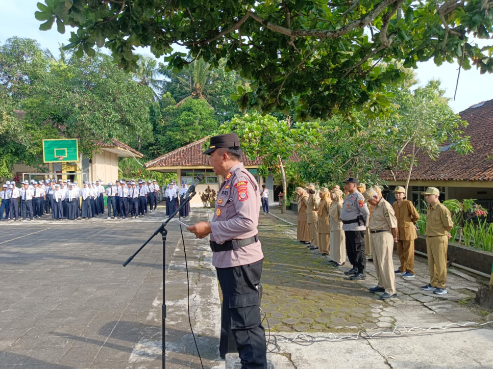 Pengasih - Dalam rangka membentuk karakter pelajar yang disiplin, berakhlak baik, serta taat hukum sejak usia dini, Polsek Pengasih melaksanakan kegiatan Police Go To School di SMP Negeri 3 Pengasih, Kapanewon Pengasih, Kabupaten Kulon Progo, Kegiatan tersebut dilaksanakan dalam bentuk upacara bendera yang diikuti oleh seluruh siswa, dewan guru, serta staf sekolah.Bertindak selaku Inspektur Upacara dalam kegiatan tersebut adalah Kanitbinmas Polsek Pengasih, AKP Landung Sumardi. Kehadiran pihak kepolisian di lingkungan sekolah ini merupakan wujud nyata sinergi antara Polri dan dunia pendidikan dalam upaya pembinaan generasi muda.