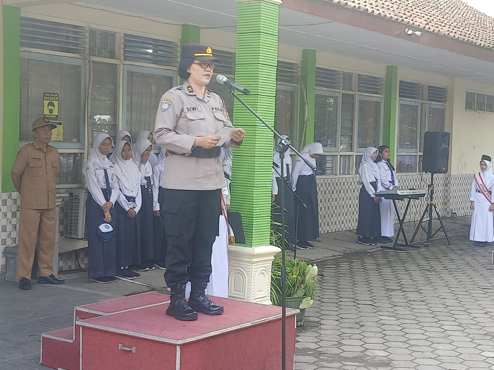 Wates - Polsek Wates kembali melaksanakan program Police Goes To School sebagai wujud nyata kepedulian Polri terhadap dunia pendidikan dan pembentukan karakter generasi muda. Kegiatan ini dilaksanakan pada upacara bendera hari Senin di SMP Negeri 1 Wates, Senin pagi (26/01/2026).Bertindak sebagai pembina upacara, Panit Binmas Polsek Wates Iptu Siwi S didampingi Aiptu Ekhsan, menyampaikan pesan-pesan kamtibmas kepada seluruh siswa, guru, dan staf sekolah. Kegiatan ini bertujuan untuk menanamkan nilai kedisiplinan, tanggung jawab, serta meningkatkan kesadaran hukum sejak usia sekolah.