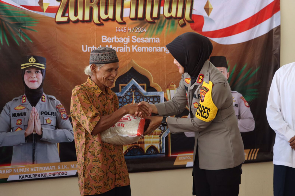 "Polres Kulonprogo dan polsek jajaran dalam hal ini, sudah melakukan berbagai upaya dalam rangka membantu mewujudkan kesejahteraan masyarakat melalui beberapa kegiatan sosial kemasyarakatan diantaranya melalui penyaluran zakat fitrah kepada masyarakat." imbuh Kapolres Kulonprogo