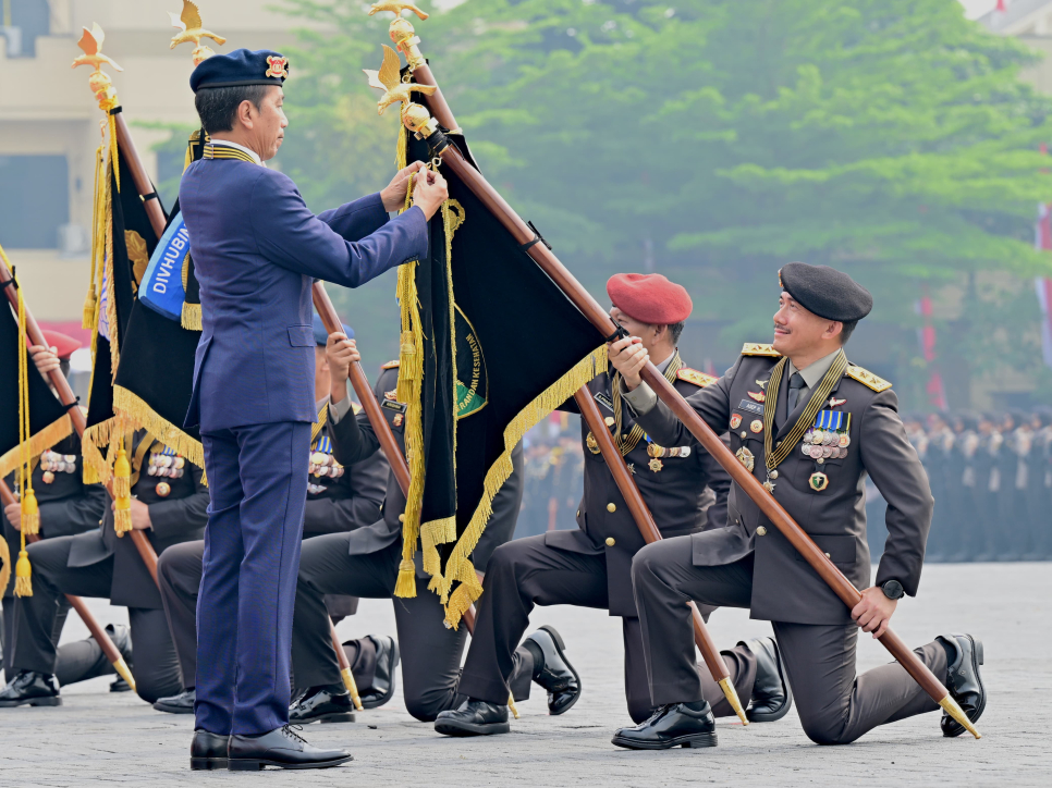 Selain menerima medali kehormatan, dalam kesempatan ini, Presiden Jokowi juga diangkat menjadi warga kehormatan Brimob.