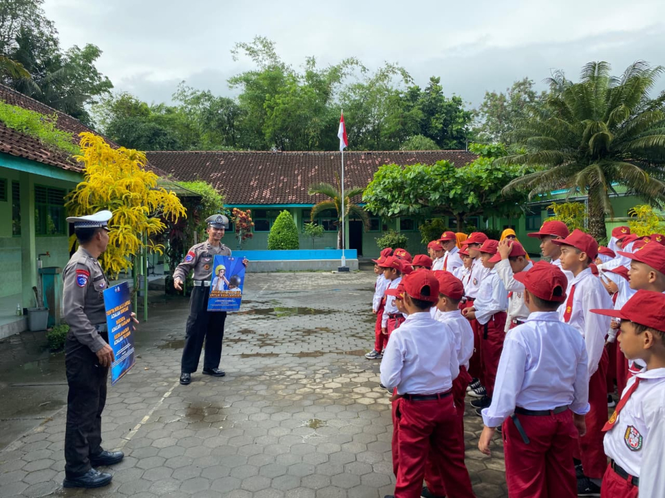 Polsek Galur Tanamkan Budaya Tertib Lalu Lintas Sejak Dini di SD Negeri 2 Pandowan