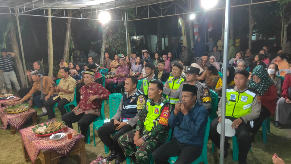 KALIBAWANG - Bhabinkamtibmas Kalurahan Banjarasri bersama Babinsa Serka Tukidi dan anggota Polsek Kalibawang dan hadiri dan laksanakan pengamanan giat Merti Padukuhan Jurang Depok, Banjarasri, Kalibawang. Tradisi merti Padukuhan merupakan salah satu kegiatan budaya untuk membangun kebersamaan, sekaligus sebagai sarana menghidupkan kehidupan desa yang dekat dengan nilai-nilai luhur tradisi dan budaya peninggalan para leluhur, yang perlu di jaga kelestarianya, di jaman era globalisasi yang mana budaya dari leluhur mulai banyak di tinggalkan oleh warga masyarakat.