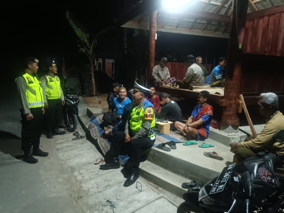 Kalibawang - Personil Polsek Kalibawang di. Pimpin Iptu Andi Budi Laksono, S.IP., melaksanakan sambang dan pengecekan kesiap siagaan petugas Satkamling di Padukuhan Duwet III, Kalurahan Banjarharjo, Kalibawamg. Minggu (01/10/2023) malam.Kapolsek Kalibawang AKP Zainuri, S.H., M.H., mengatakan, kegiatan ini rutin dilakukan guna memberikan semangat kepada warga yang melaksanakan ronda malam.