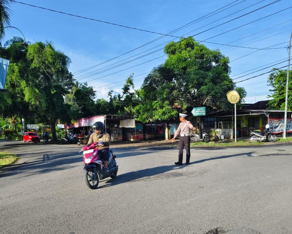 Polsek Pengasih melaksanakan Pengaturan Lalu Lintas Pagi di Wilayah Kapanewon Pengasih untuk Kelancaran dan Keamanan Pengguna Jalan