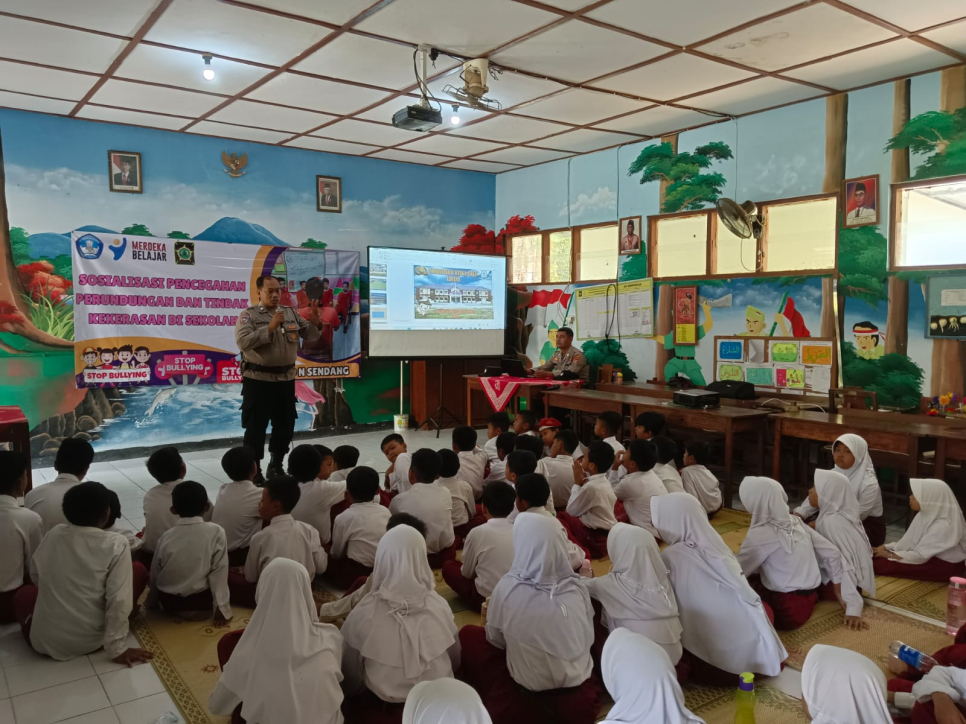 Pengash-Kanitbinmas Polsek Pengasih AKP Ngatija dan PS.Panit Binmas Aiptu Haryadi serta Bhabinkamtibmas Kalurahan Karangsari Aipda Widodo melaksanakan melaksanakan giat silaturahmi Kamtibmas/Sambang di SD Negeri Sendang Kalurahan Karangsari Kapanewon Pengasih pada Jumat 10 November 2023.Dalam kesempatan tersebut Kanit Binmas memberikan Materi pembinaan tentang binluh Pencegahan Bullying dan memberikan himbauan tentang Kedisiplinan, Kenakalan anak/remaja, Bijak dalam bermedia sosial serta Deklarasi Stop Bullying (Penandatanganan Deklarasi).
