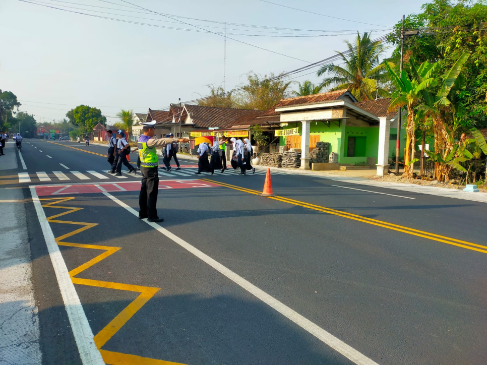 POLSEK SENTOLO MELAKSANAKAN COMMANDER WISH PAGI & MEMBANTU PENYEBERANGAN BAGI SISWA SEKOLAH