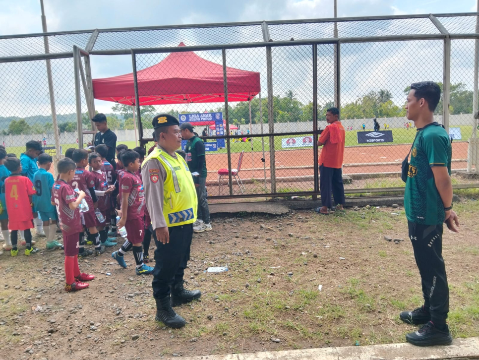 Polsek Wates Laksanakan Pengamanan Liga Anak Kulon Progo Tahun 2025 di Stadion Cangkring
