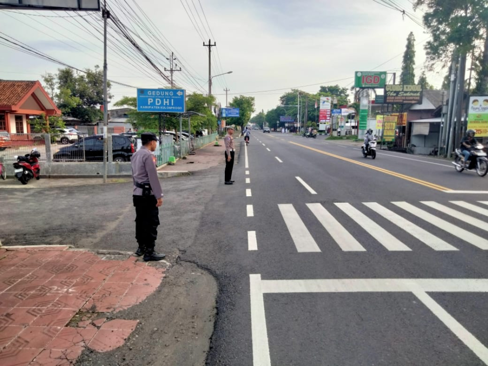 Menurut Ipda Wakijo Personel Polsek Wates disiagakan di sejumlah titik strategis di sekitar Jalan Ahmad Dahlan, guna mengantisipasi kepadatan kendaraan serta potensi gangguan kamtibmas selama kegiatan simulasi berlangsung.