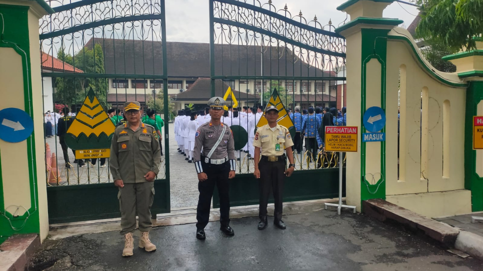 Personel ditempatkan di beberapa titik strategis untuk memastikan kegiatan upacara berlangsung dengan aman, tertib, dan lancar.