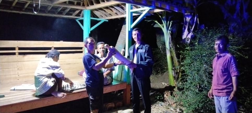 Selanjutnya Kapolsek panjatan memberikan sarana kontak berupa 1 buah kentongan guna mendukung kegiatan sat kamling.
