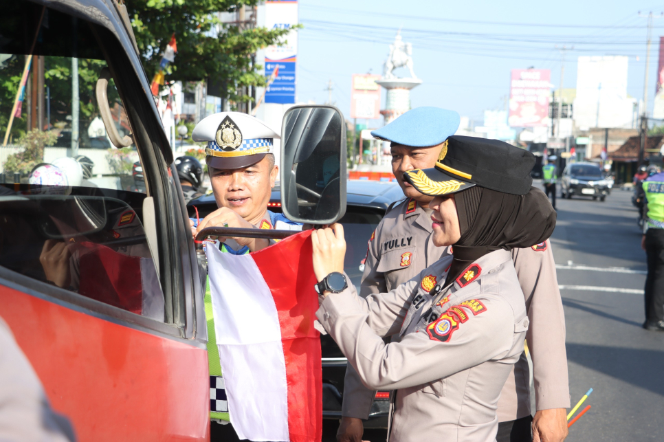 "Pembagian bendera ini sebagai bentuk ajakan kepada masyarakat untuk lebih aktif dalam memeriahkan HUT RI ke-80. Kami berharap masyarakat tergerak untuk ikut menghias lingkungan dan kendaraannya dengan bendera Merah Putih sebagai simbol semangat kemerdekaan," ungkap Kompol Amalia di sela kegiatan.