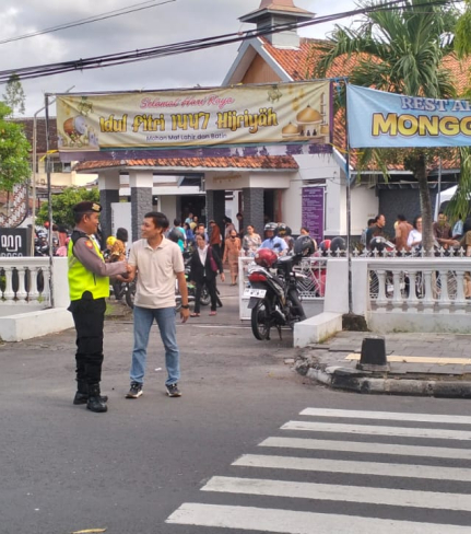 Kulon Progo - Personel Polsek Sentolo melaksanakan kegiatan pengamanan Sholat Idulfitri 1447 H ...