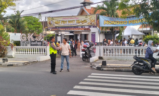 Wates - Polsek Wates melaksanakan kegiatan monitoring sekaligus pengamanan ibadah Misa Minggu ...