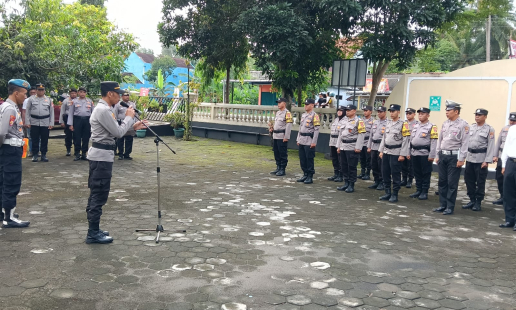 TEMON-Suasana apel pagi di Polsek Temon, Polres Kulonprogo menjadi ajang pembinaan dan ...