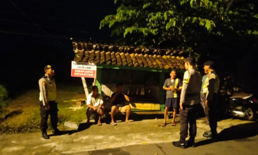 Wates -Polsek Wates melaksanakan patroli malam sekaligus sambang Pos Satkamling di Padukuhan ...