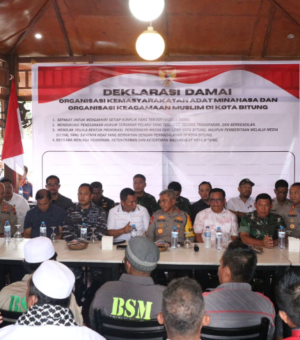 Sulut. Deklarasi damai digelorakan oleh perwakilan organisasi, kemasyarakatan Minahasa dan ...