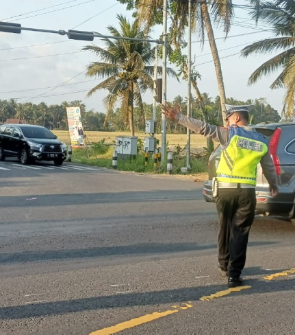 Pengaturan lalu lintas sore guna cipta kondisi dan menjaga ketertiban yang dipimpin Kanitlantas ...