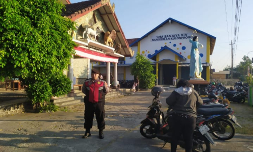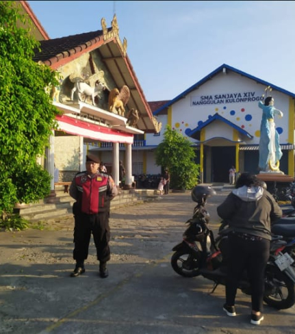 Nanggulan- Jajaran Polsek Nanggulan melaksanakan kegiatan rutin yaitu pengamanan Misa Minggu ...