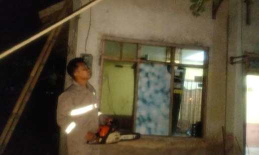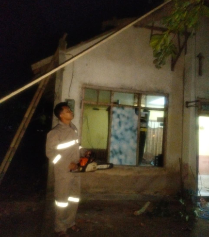 Kulonprogo - Anggota Polsek Galur melaksanakan kegiatan penanganan kebencanaan akibat pohon ...