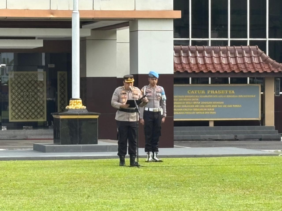 Kabid TIK mengambil apel pagi Polda DIY. Senin, 12 Januari 2026 bertempat di Halaman Mapolda DIY.