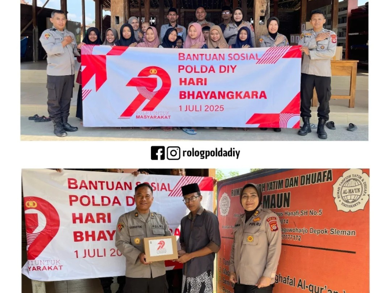 Bakti untuk Negeri, Peduli untuk Kemanusiaan. Dalam rangka menyambut Hari Bhayangkara ke-79 tahun 2025, Polda DIY menyalurkan bantuan sosial untuk Panti Asuhan di Yogyakarta. Kami percaya bahwa kemanusiaan dan kepedulian adalah kunci untuk mempererat hubungan Polri dan masyarakat. #haribhayangkara #polripeduli #rologpoldadiy