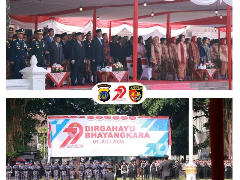 Dalam memeperingati Hari Bhayangkara Ke 79, Polda DIY menggelar Upacara dan Tasyakuran di lapangan Pemda Sleman. Kegiatan ini dihadiri ole Gubernur DIY, Wakil Gubernur DIY, Pejabat Daerah, serta para Pejabat Utama Polda DIY. Upacara berlangsung dengan khidmat, dilanjutkan dengan defile pasukan upacara, peragaan kemampuan Polri, dan panggung hiburan rakyat. Upacara Hari Bhayangkara juga dimeriahkan dengan peragaan kolone senjata yang presisi, beladiri Polri yang tangguh, dan Polisi Cilik yang ceria dan penuh semangat. Acara ini menjadi bukti keseriusan Polri dalam menjaga keamanan dan ketertiban masyarakat. #HariBhayangkarake79 #PolriPresisi #PolriUntukMasyarakat #PoldaDIY #Rologpoldadiy #Literasilogistik