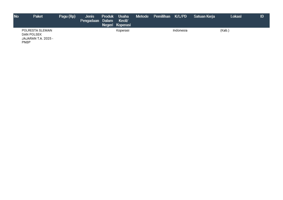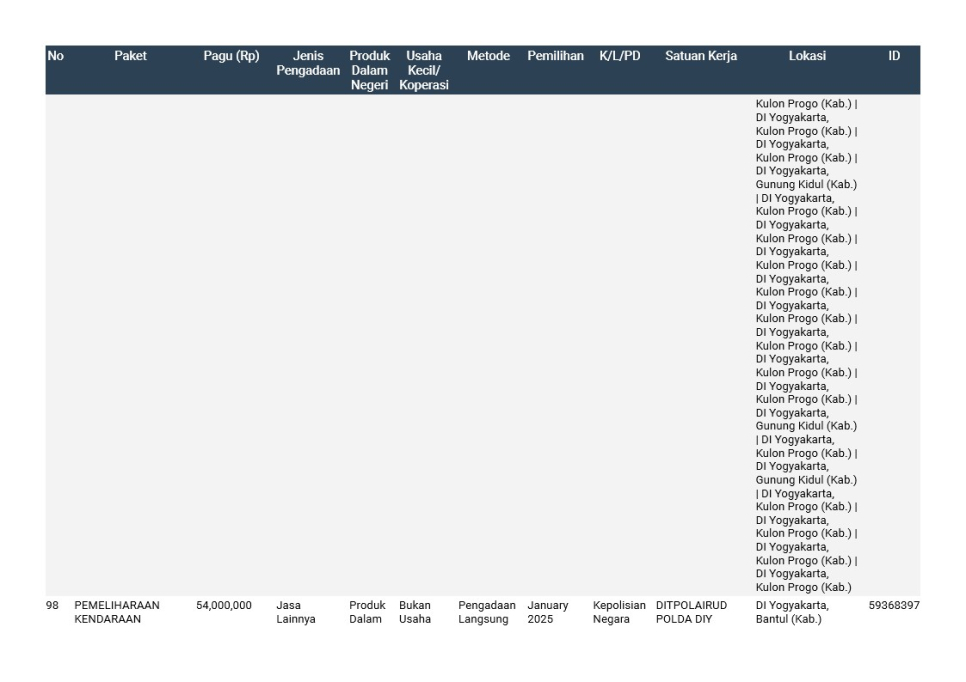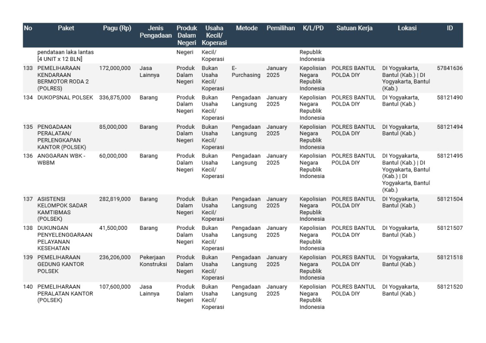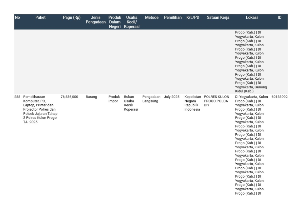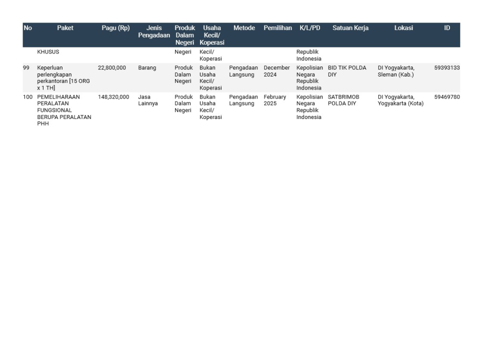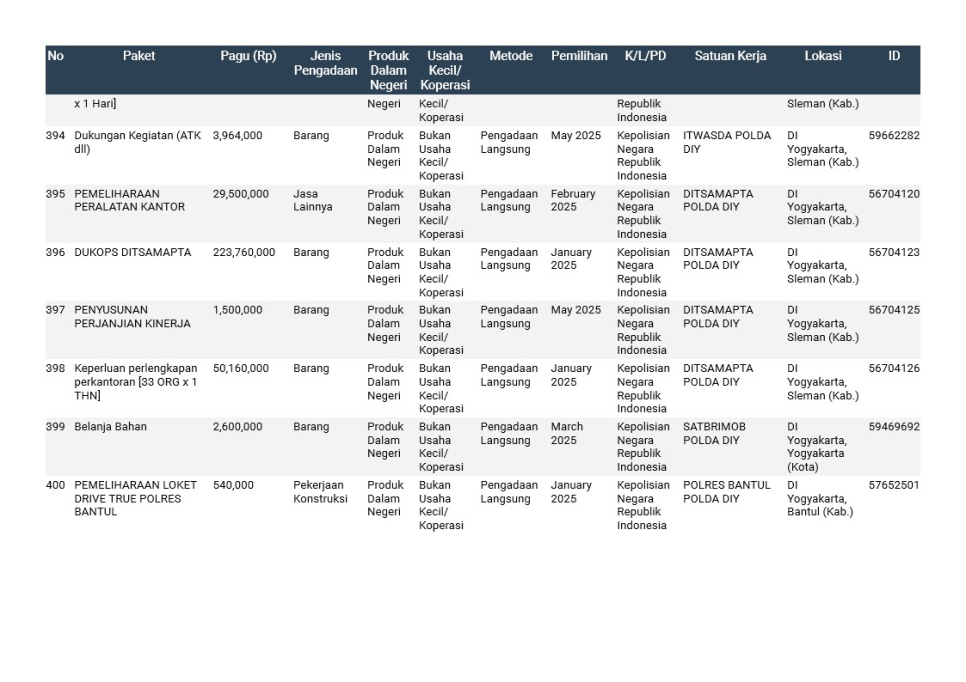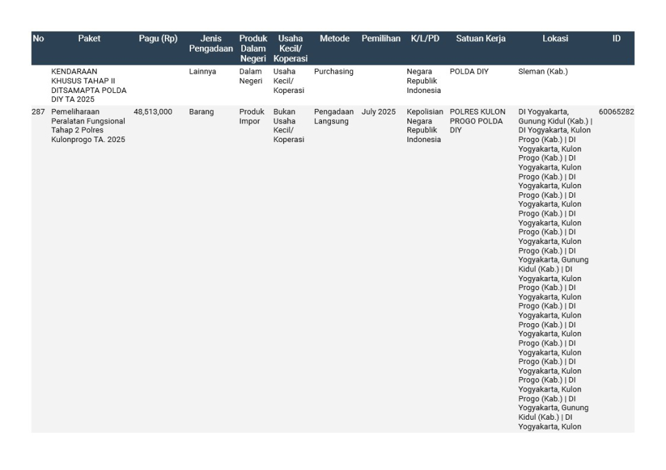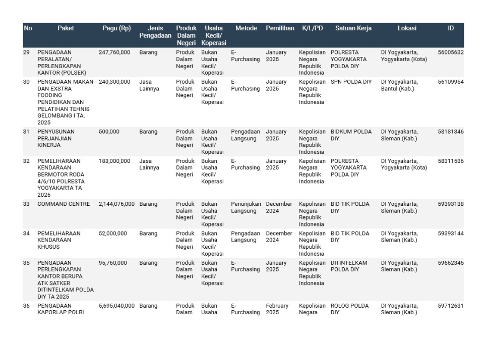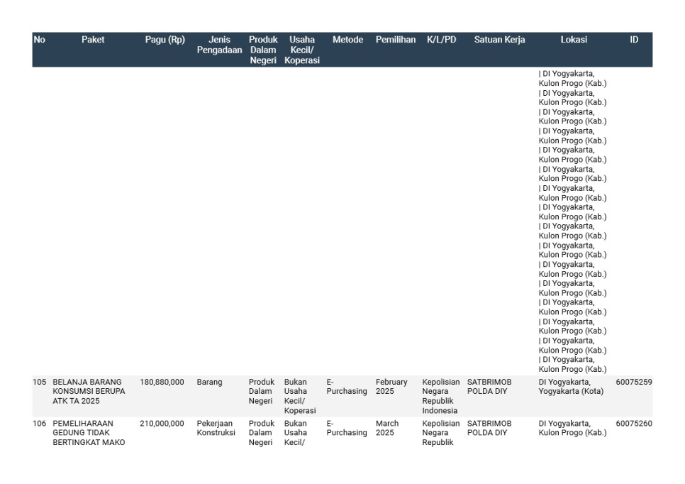 Rencana Umum Pengadaan (RUP) Polda DIY TA. 2025