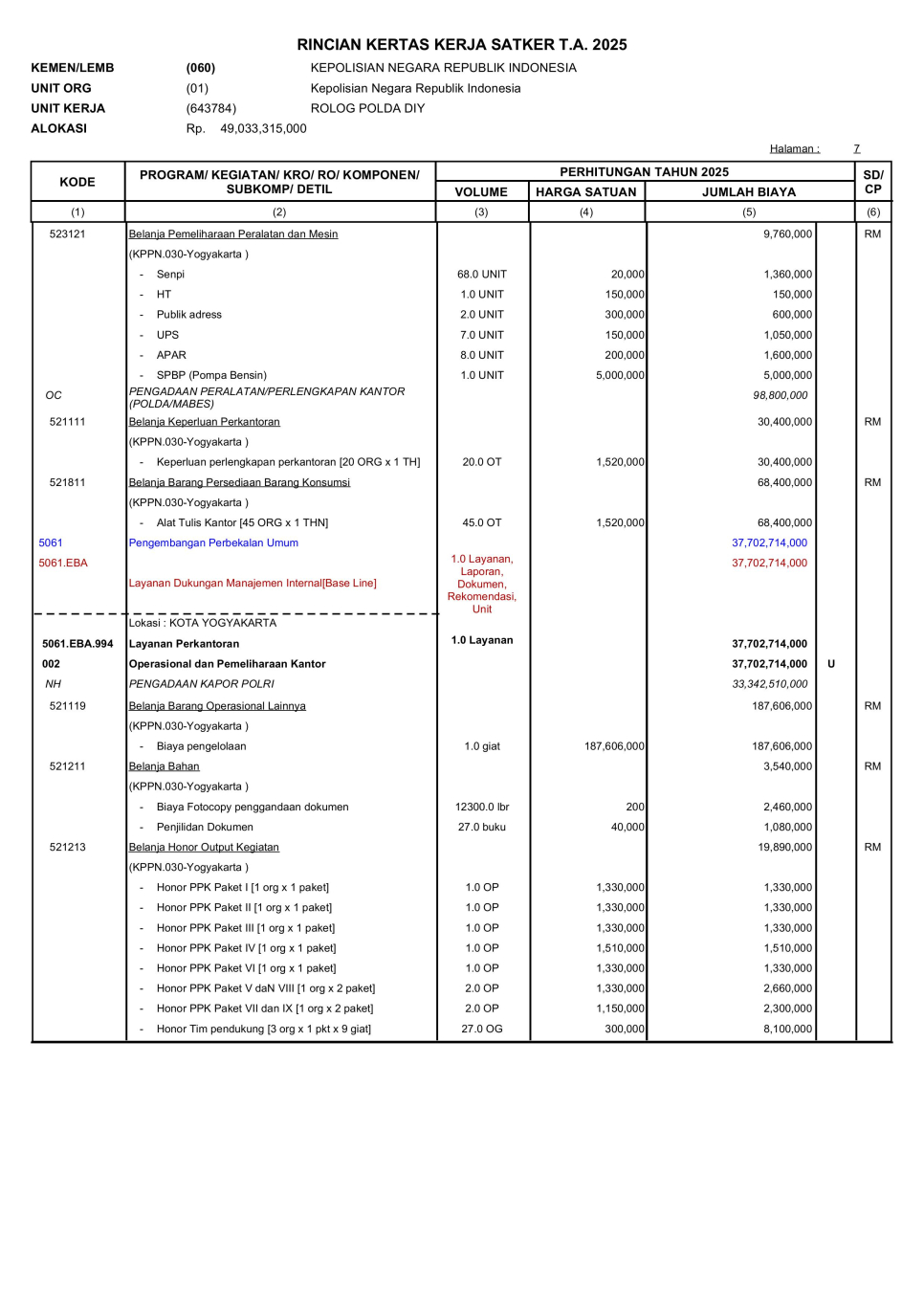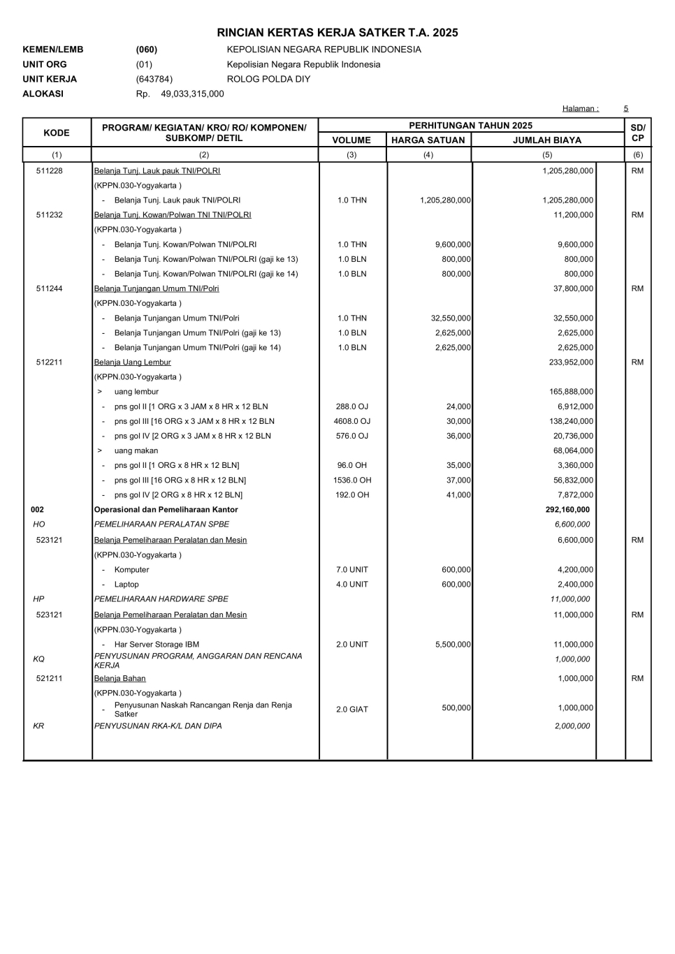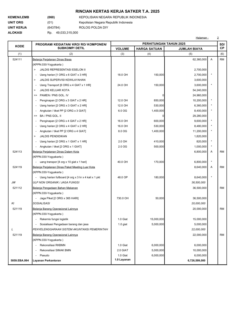 RKAKL BIRO LOGISTIK TA. 2025
