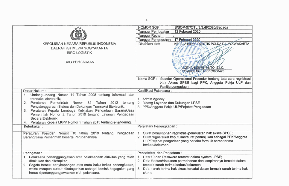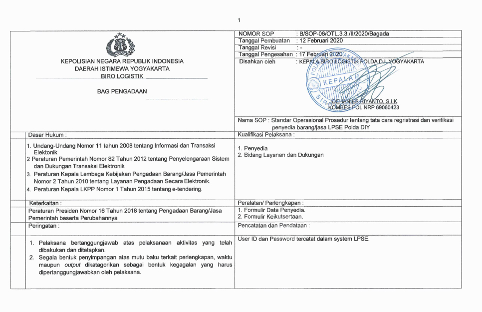 BIRO LOGISTIK Kepolisian Daerah Istimewa Yogyakarta