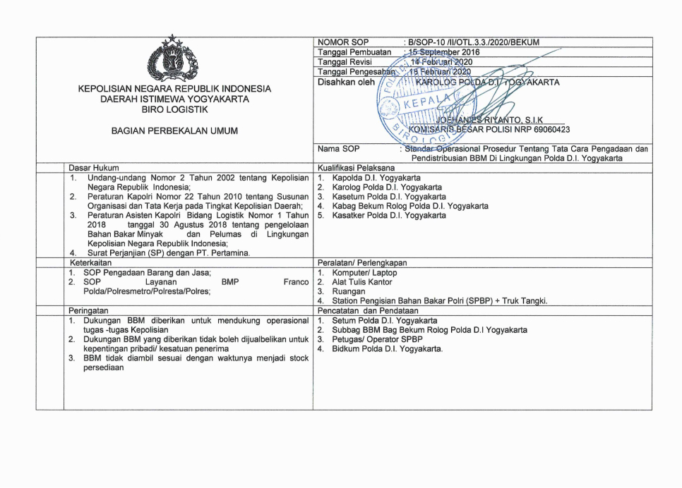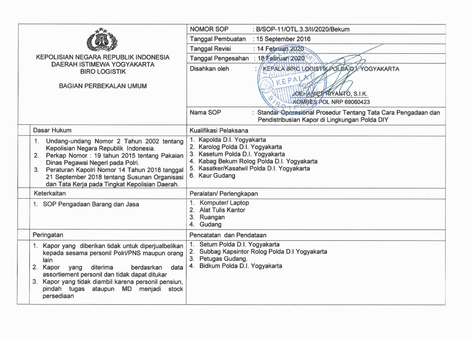 BIRO LOGISTIK Kepolisian Daerah Istimewa Yogyakarta