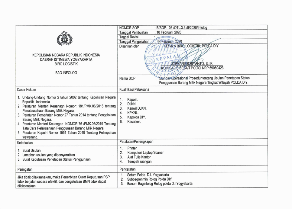 STANDAR OPERASIONAL PROSEDUR (SOP) BAGINFOLOG