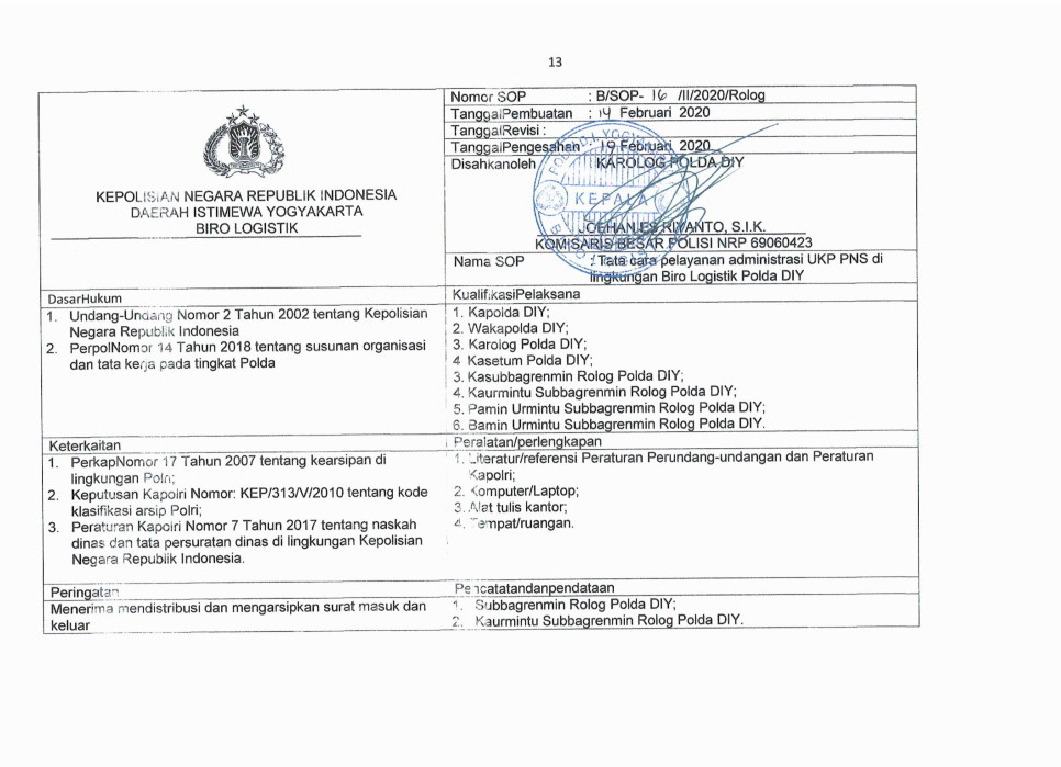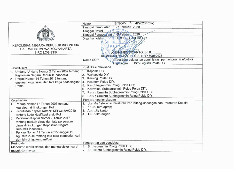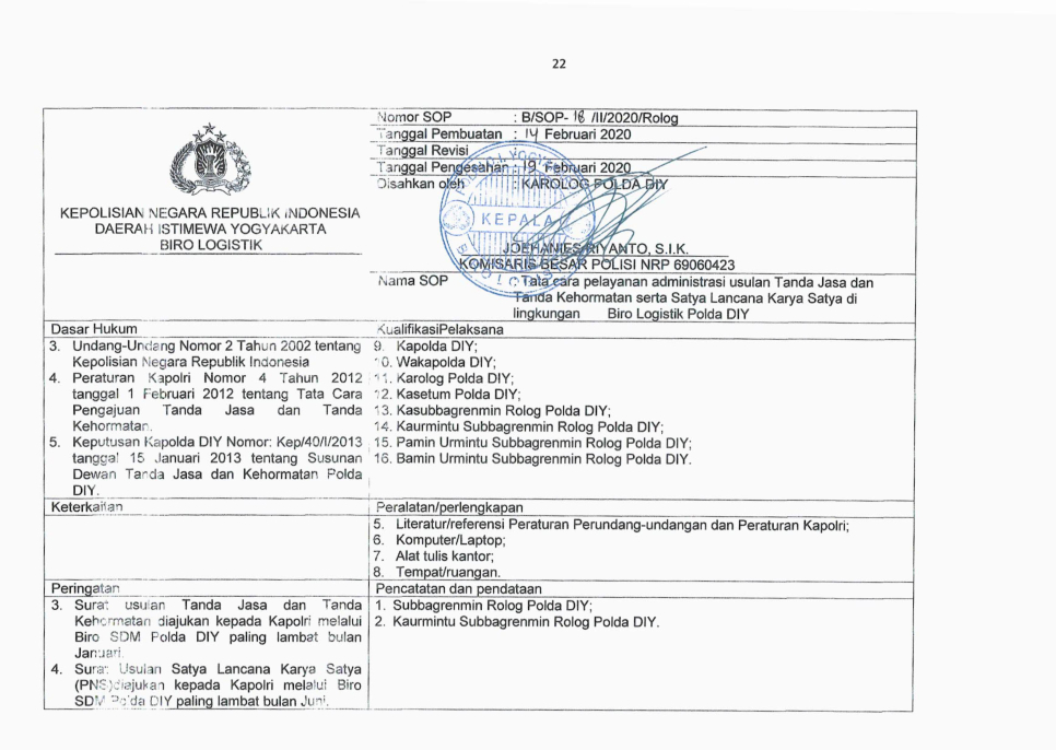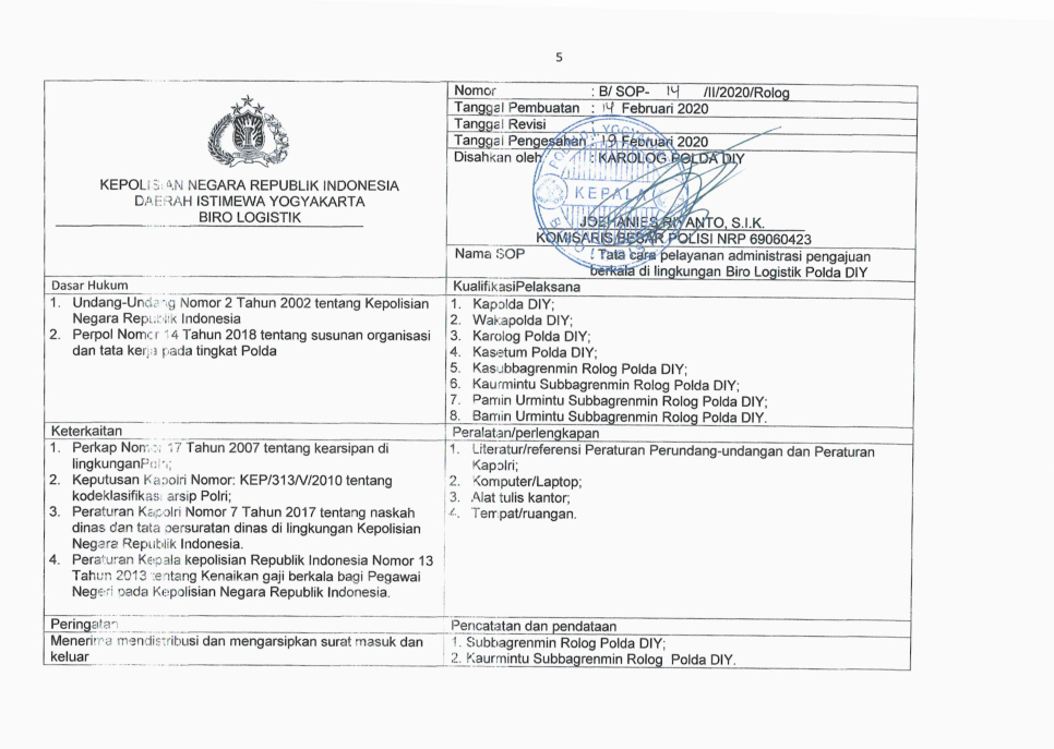 BIRO LOGISTIK Kepolisian Daerah Istimewa Yogyakarta