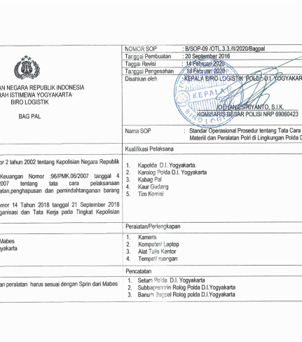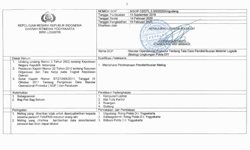 BIRO LOGISTIK Kepolisian Daerah Istimewa Yogyakarta