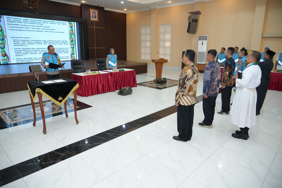 jogja.polri.go.id -Humas, Wakapolda DIY Brigjen Pol Eddy Djuanedi, S.I.K. memimpin prosesi pengambilan sumpah dan penandatanganan pakta integritas dalam rangka penerimaan Bintara Brimob T.A. 2025 Panda DIY. Kegiatan berlangsung di Gedung Anton Soedjarwo, Mapolda DIY, Rabu 19 November 2025, dihadiri oleh peserta seleksi dan panitia, serta unsur pengawas internal dan eksternal.Prosesi dimulai dengan pembacaan pakta integritas dan pengucapan sumpah, dipandu langsung oleh Wakapolda DIY. Panitia seleksi dan peserta turut menandatangani pakta integritas sebagai bentuk komitmen untuk menjaga proses seleksi tetap bersih, transparan, akuntabel, dan humanis.