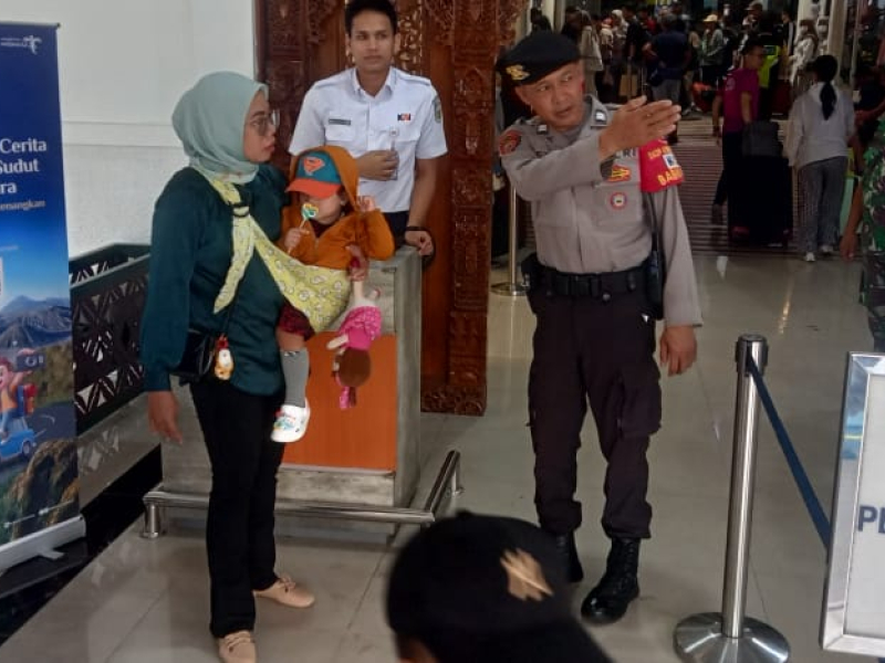 Personel Subditwaster Ditpamobvit Polda DIY melaksanakan pemantauan situasi keamanan di seputaran Stasiun Tugu Yogyakarta, dialogis dengan petugas Boarding Pass, penumpang kereta api serta beri arahan dan himbauan keamanan dan ketertiban kepada petugas satpam untuk meningkatkan keamanan dalam rangka Hari Raya Idul Fitri di Stasiun Tugu Yogyakarta.