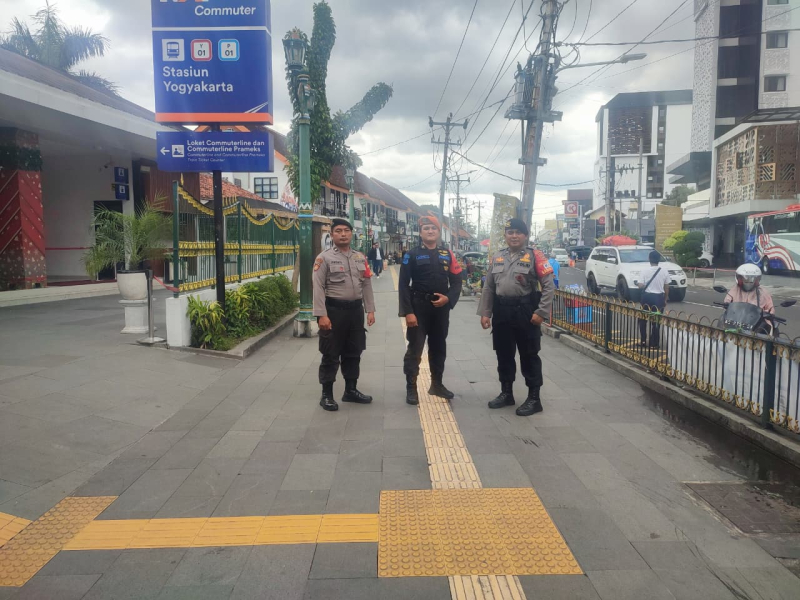 Bersama Polsuska dan kemanan intern Stasiun Tugu Yogyakarta Personel Ditpamobvit melaksanakan pantauan situasi Kamtibmas di Stasiun Tugu Yogyakarta yang meliputi area Selasar jalan Pasar kembang, boarding gate, pintu keluar dibarengi dialogis dengan penumpang guna terciptanya situasi aman, lancar dan tertib