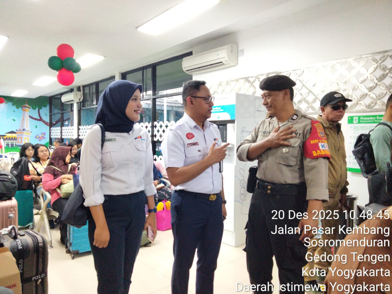 Personel Subditwaster Ditpamobvit Polda DIY melaksanakan bantuan pengamanan di JPL 739 Cokroaminoto, JPL 736 Soragan, dan Stasiun Tugu Yogyakarta. Sabtu, 20 Desember 2025.